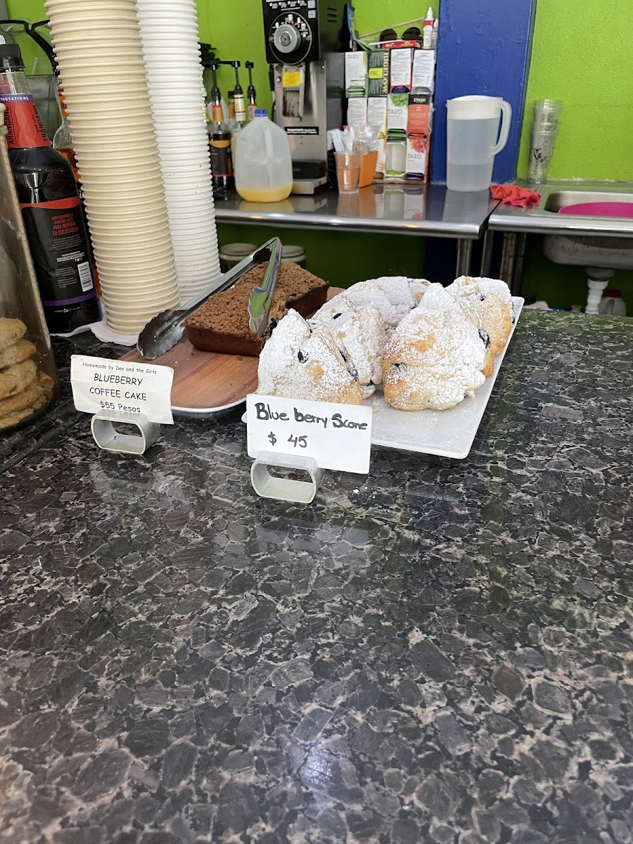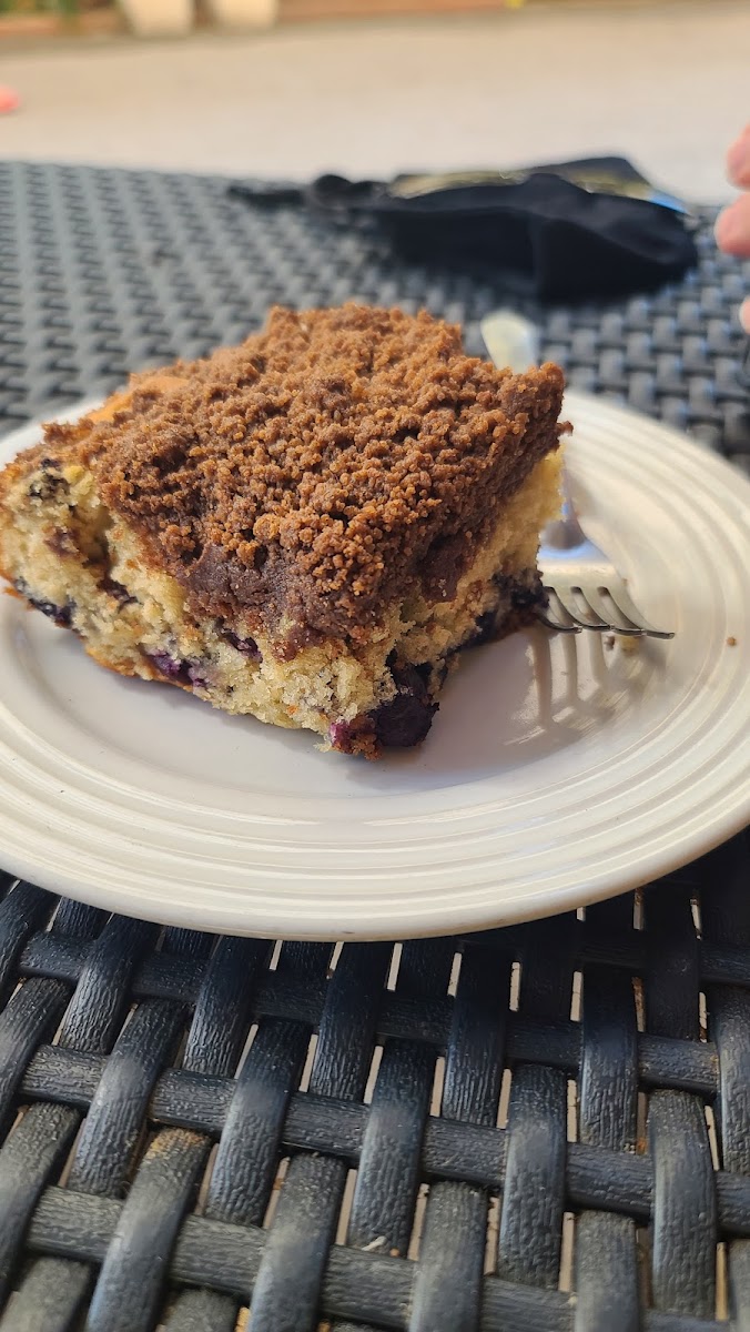 Delicious coffee and fresh baked muffins and cake. Their blueberry coffee cake was my favorite! Came here multiple times while I was in town and I’d come again :)